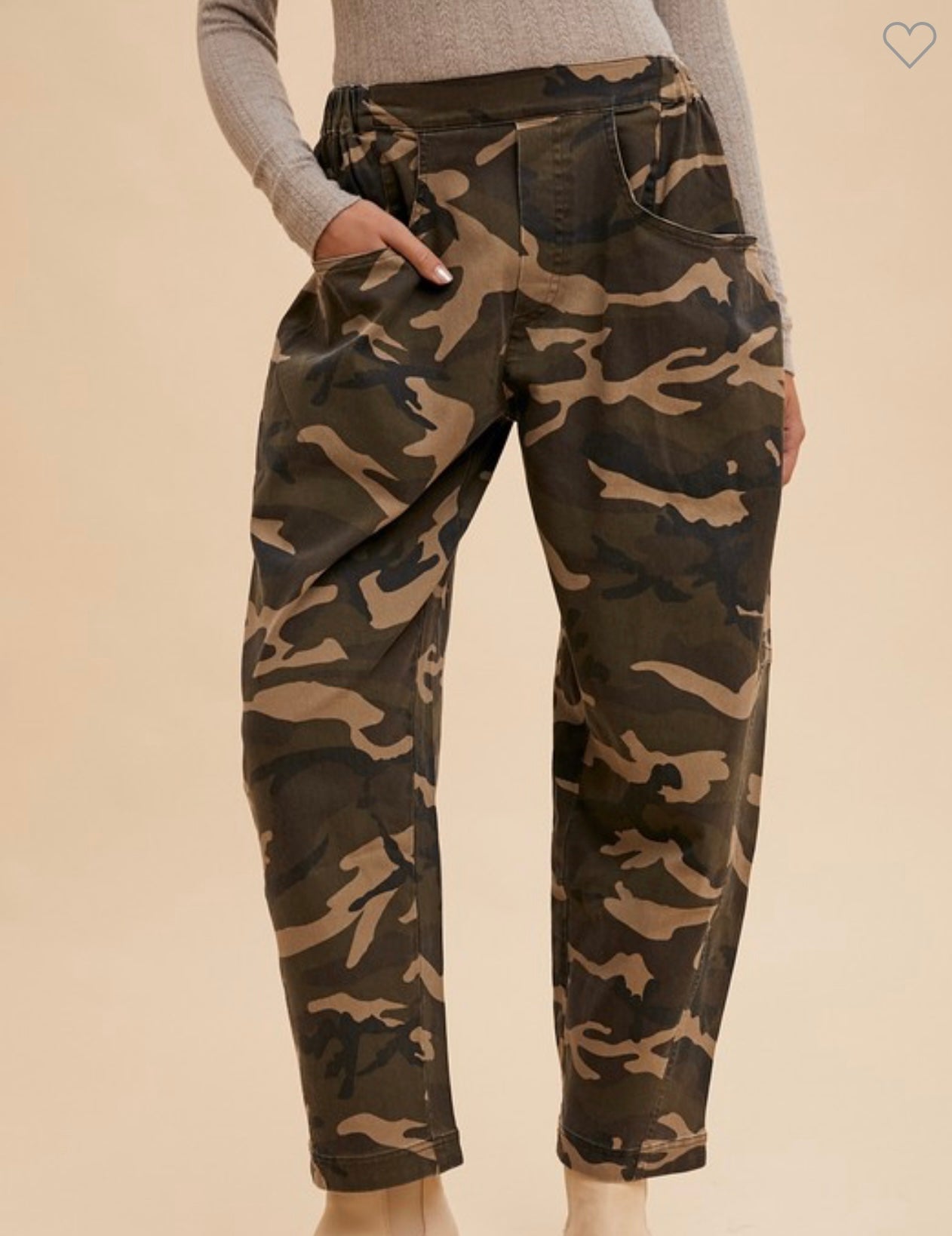 Elastic Waist Camo Barrel Pants